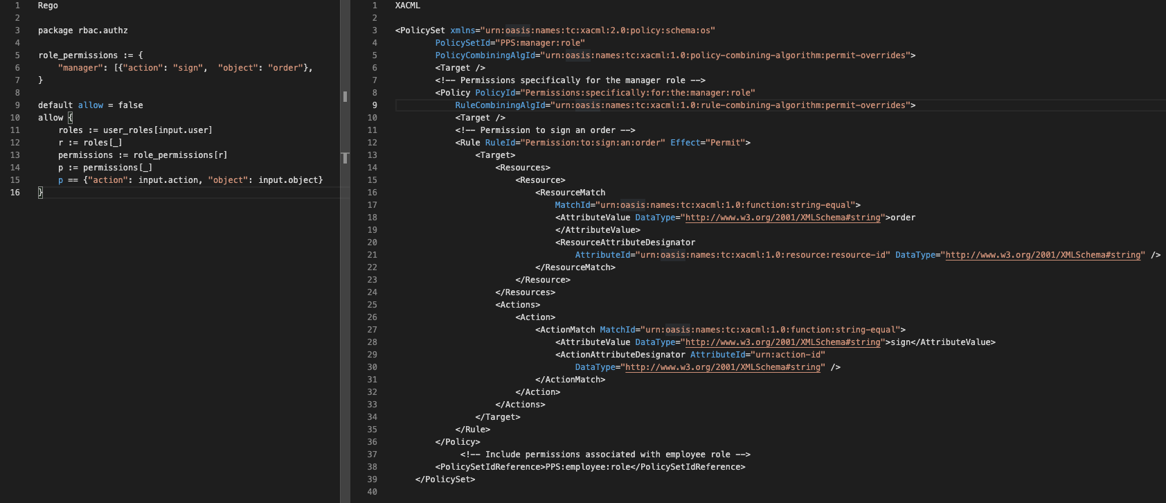 While not evident from the authorization flow which we described, it is important to note that policy in Rego is much more accessible and easier to read/maintain than in XACML. Check out this example: (For a more detailed explanation of this example check out this guide)